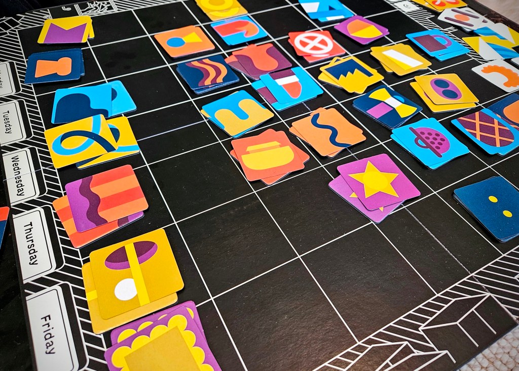 I will begin by saying, I had a lot of fun playing this game – we spent a lot of time coming up with fun stories to help remember the locations of the different tiles by linking items in each row together. Despite the event cards that shake up each round, we had no trouble recalling the positions of items as we spent (probably too long) reiterating our mnemonics. During the endgame, we were able to recall the positions of all our items in less than a minute and a half of the five given, and we made no mistakes. This of course – was fun and rewarding, but it raised questions regarding future plays of the game. How can we make it harder? We would have to add some more restrictions somehow, and the rulebook only offers minor options for stepping up difficulty. And this leads me to the big question: