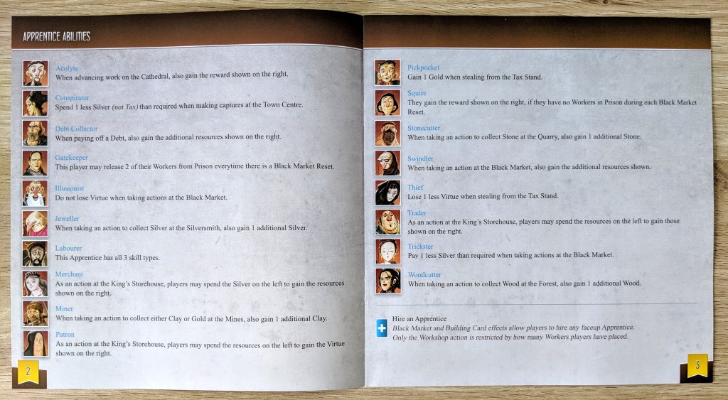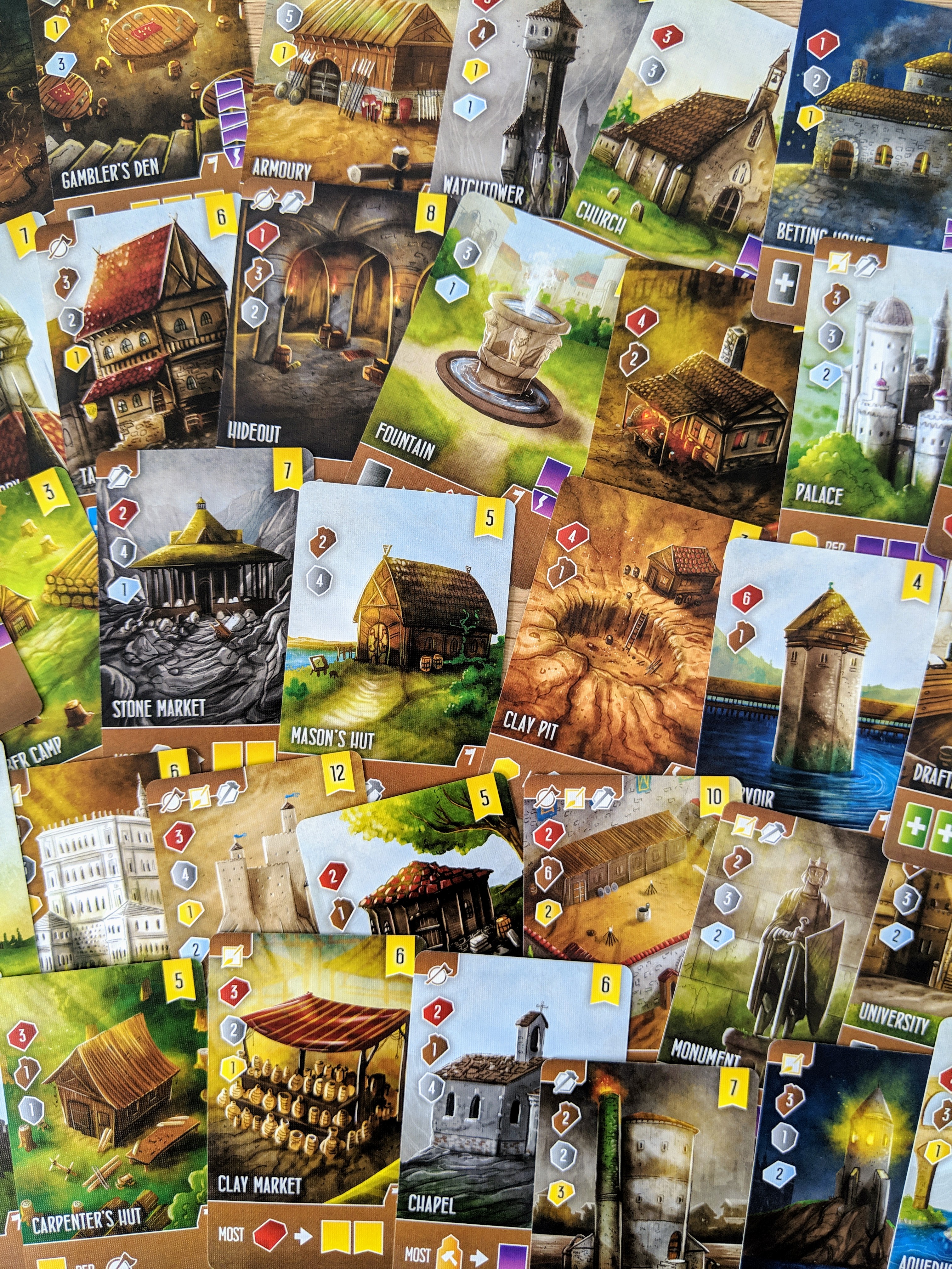 The images above show just some of the amazing artwork featured on both the apprentice and building cards. The iconography is so clear and easy to decipher while maximising the gorgeous artwork on every card.