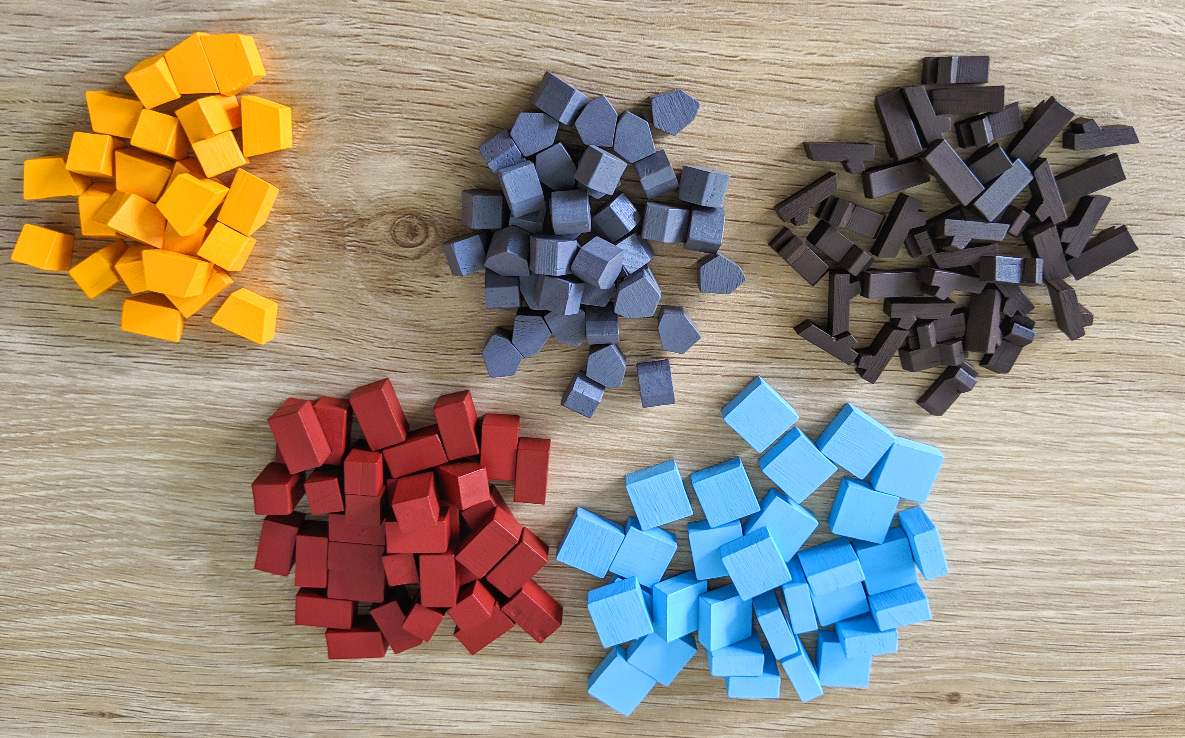 It is difficult to fault components in any game produced by Garphill. Rather than having stretch goals like other Kickstarters, games released feature good quality components from the start. This means thick cardstock, custom shaped wooden pieces, and usually metal coins as well.