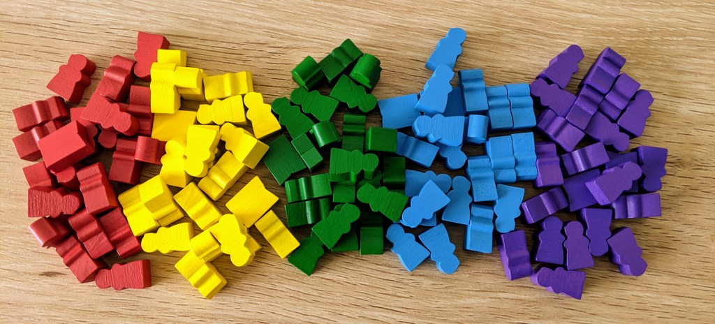 There are so many player mats in this game! Each colour comes with 2 double sided characters to choose from, with one side including a variable player power option as well. Characters all have different starting bonuses, with some leading a more prestigious life than others…