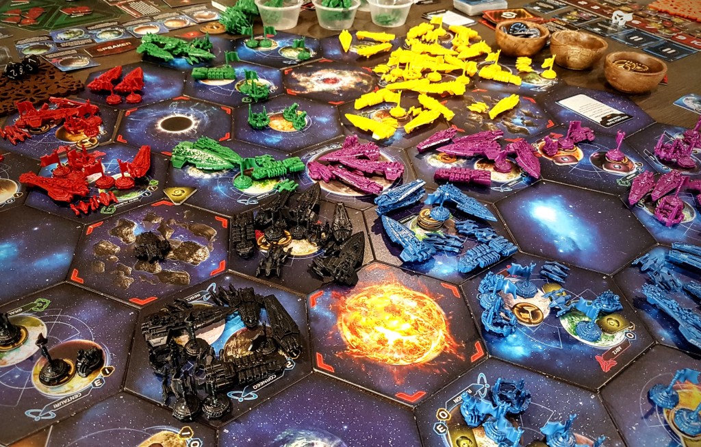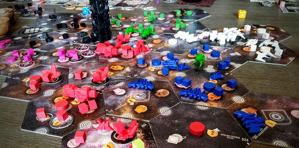 I wrote this up because I know there are people who think I’m nuts for enjoying sitting down for 6 or more hours ‘just to play a boardgame’. I suppose my goal in writing this is to highlight the fact that there is more happening in those 6 hours than just playing a game, everyone’s running their imagination engines, getting lost in the world of the game and playing through as a powerful empire pitted against those controlled by your friends. It’s a great feeling, it’s amazing fun, and I only wish there was more time to fit in these longer gaming sessions.
