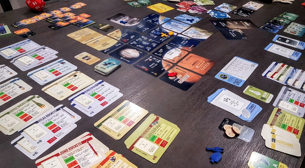 Leaving Earth is an epic game about government space agencies racing to explore the solar system. The way that we tend to play Leaving Earth leans more over toward a co-op puzzle solving experience rather than a game, and I thoroughly enjoy it that way. We trade technology and help each other complete missions, and the epic scope of the game means that we rarely properly finish, but just playing through for several hours trying to complete missions is extremely fun. It’s always very satisfying to see a giant and risky mission that’s taken years to assembly execute successfully (or explode!)