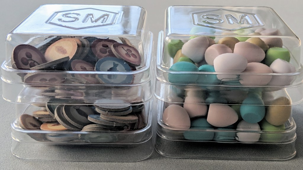The rest of the components are nice, but nothing too special. The coloured cubes could have been upgraded in my opinion as they seem very plain in comparison to all the effort that has gone into the rest of the components. I have seen people upgrading these to cute little bird houses in each player colour which is fun!