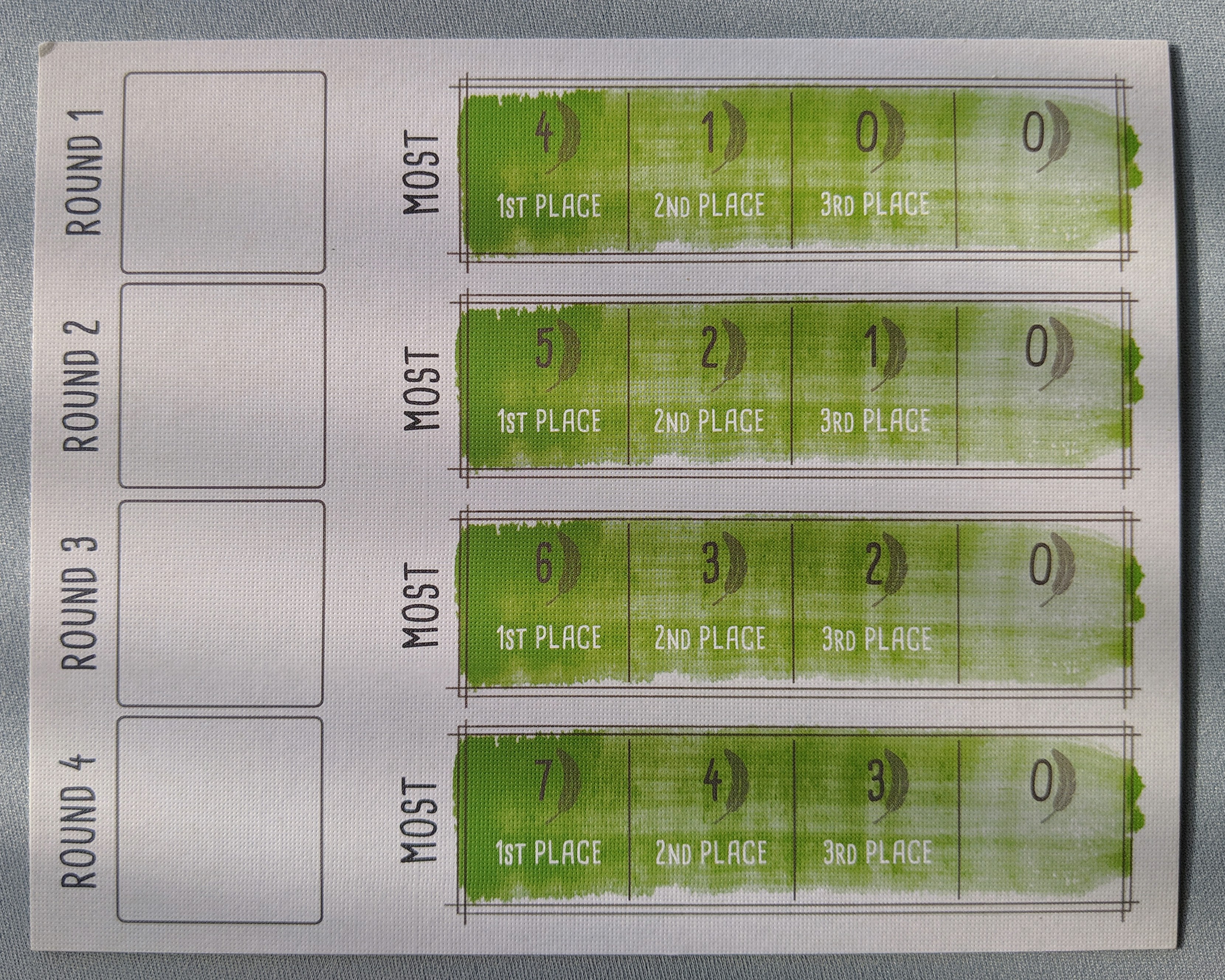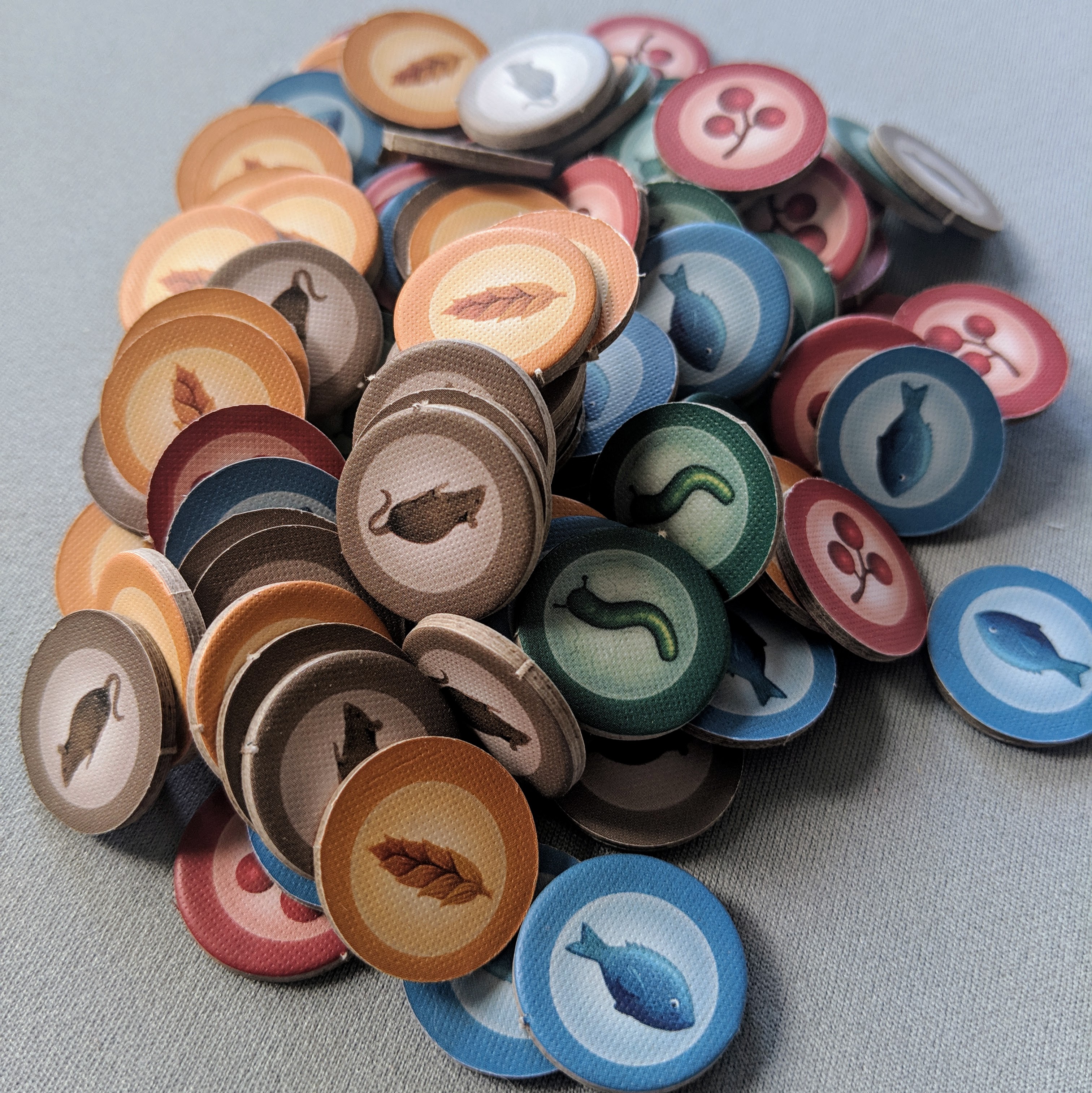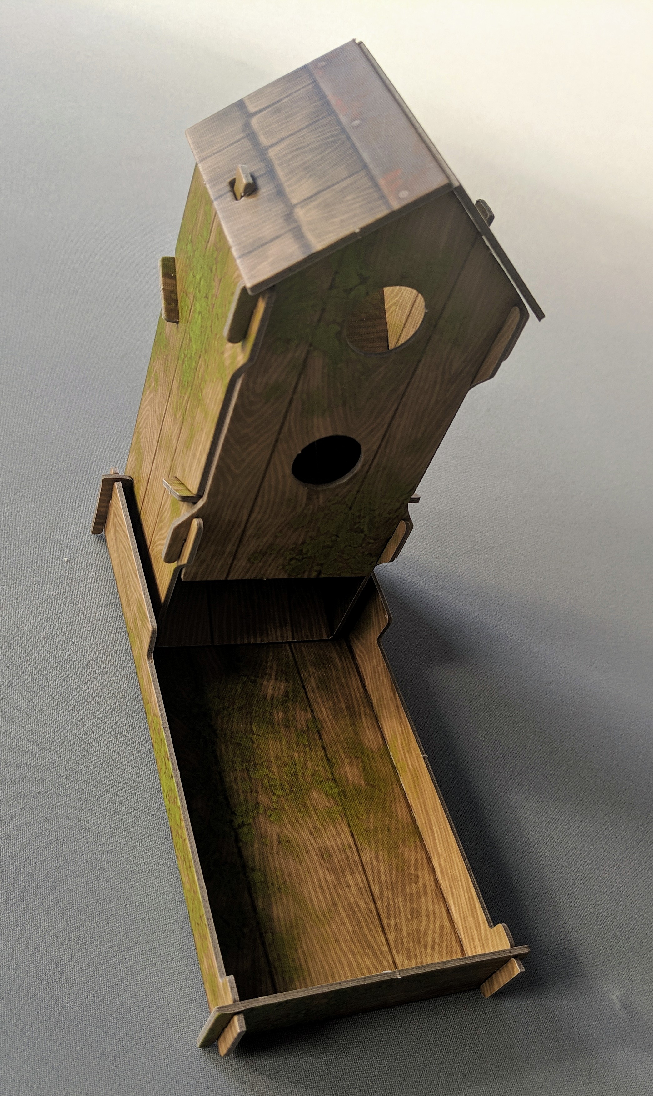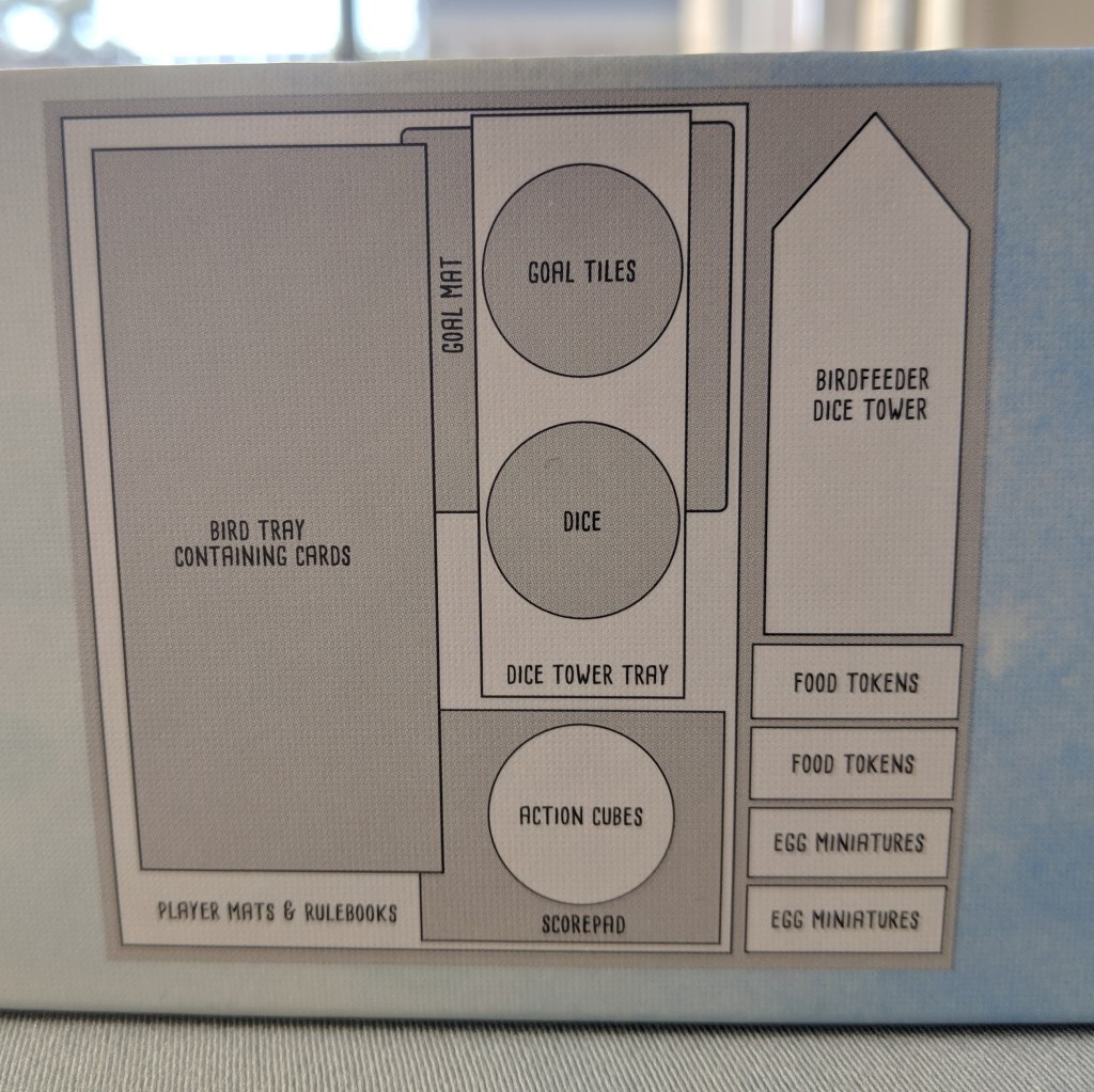 A bird feeder?! Yes. A bird feeder dice tower. This is another example of going above and beyond what is required for a general retail release of a game. It is really nice quality and made from the same linen card as the tokens. It can be taken apart into 2 pieces to fit back into the box as well, which I love. I would be very annoyed if I had to assemble it every time!