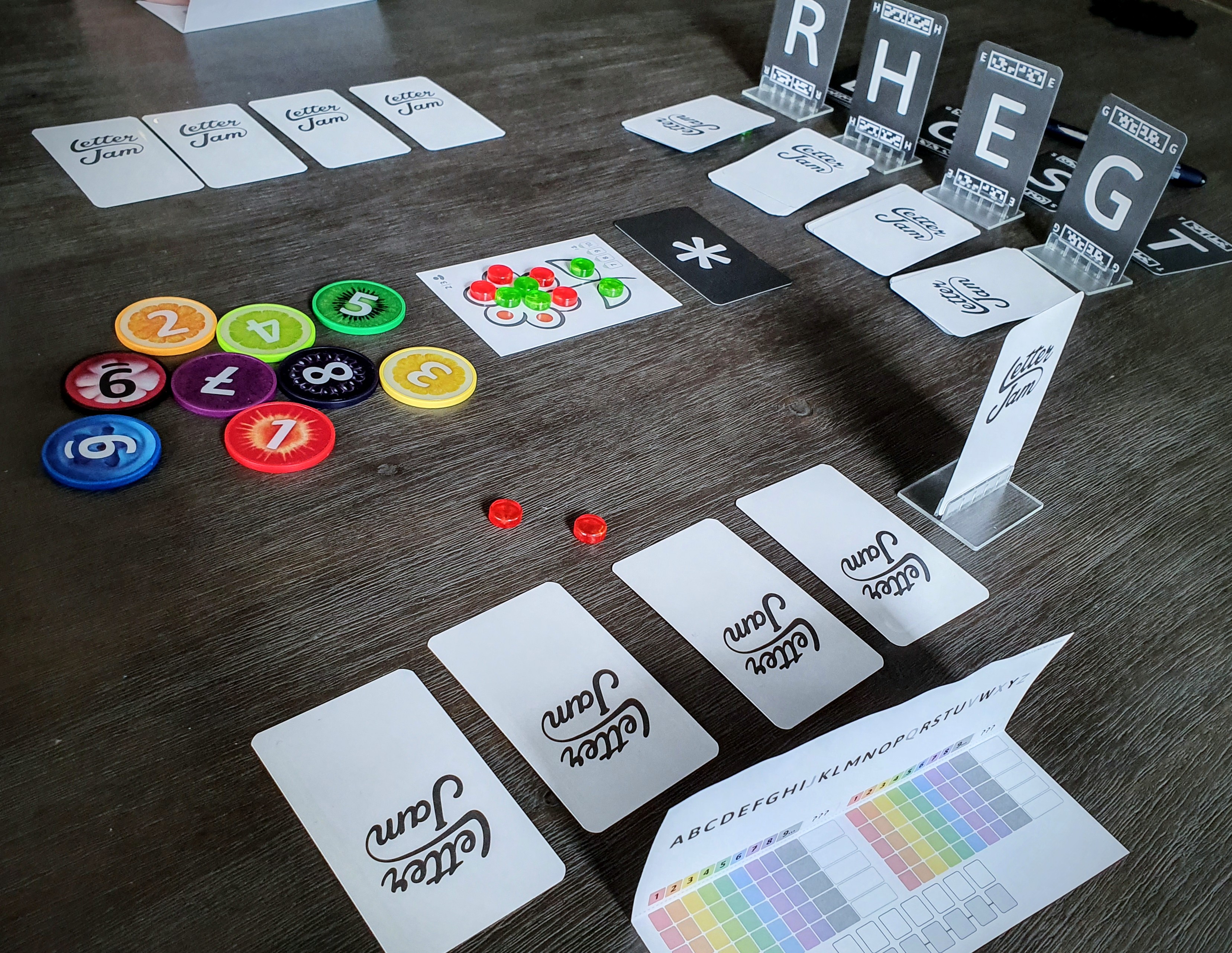 - Letter Jam is a great implementation of co-op gameplay. The game’s information asymmetry allows all players to contribute, and no one can effectively trample over the other players and ‘run the game’ themselves. Additionally the clue tokens mean no one can ‘hog’ giving clues, and no one gets out of giving clues either!
