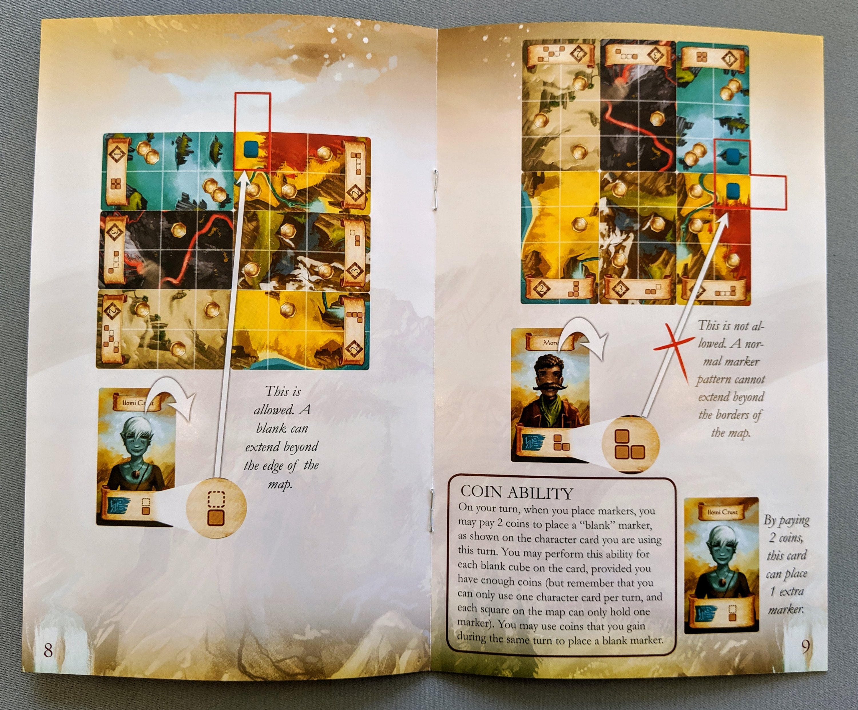 The rest of the rulebook is a bit random. I am usually the biggest fan of everything Ryan Laukat does, but this rulebook just seems rushed or not fully thought out for someone who is usually such a beautiful artist and designer. There are large gaps, and the text boxes leave text flow uneven, even though there would have been plenty of room to space out each line to assist the flow of words.
