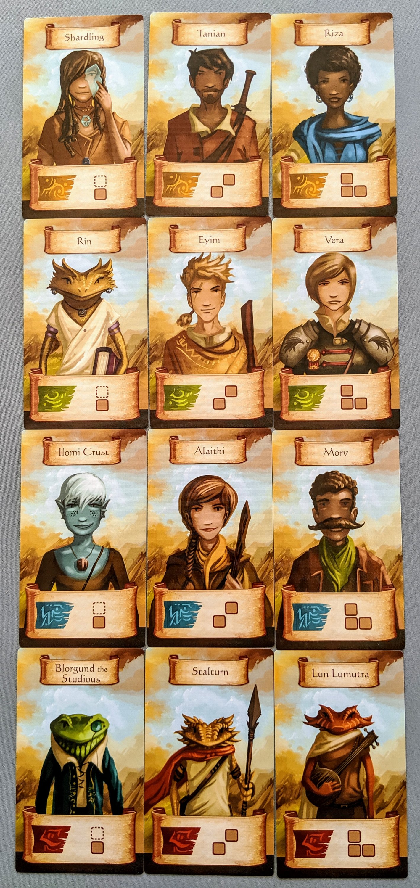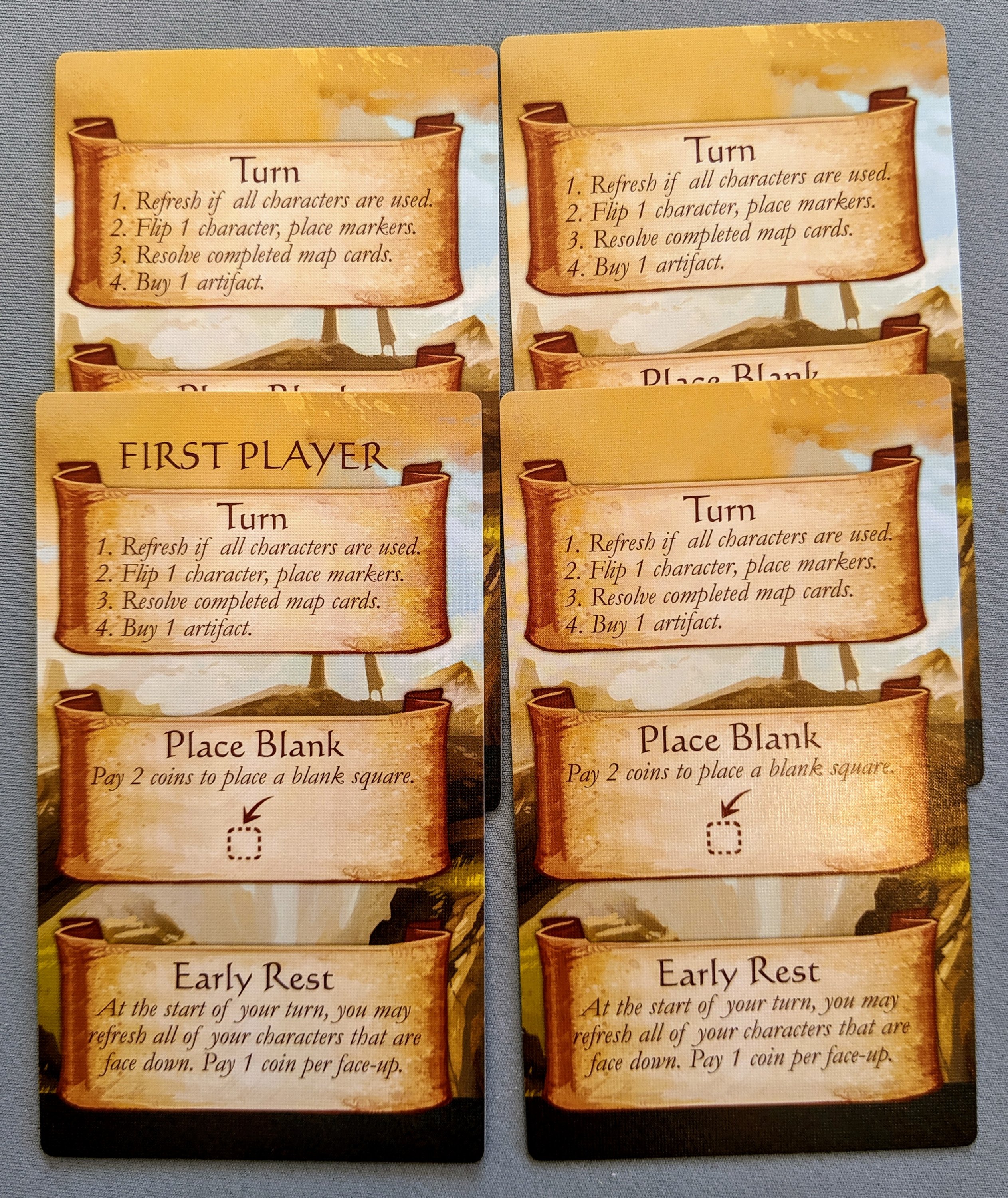 One side is used as the ‘board’, then when you add the card to your personal collection, it becomes the character, which is used to allocate your tiles out onto the ‘board.’