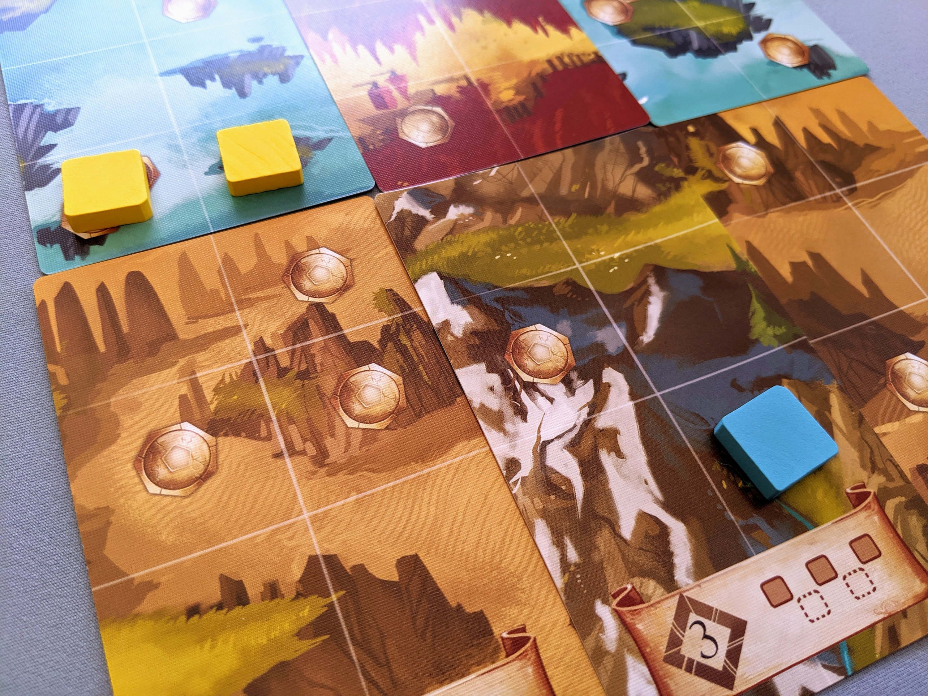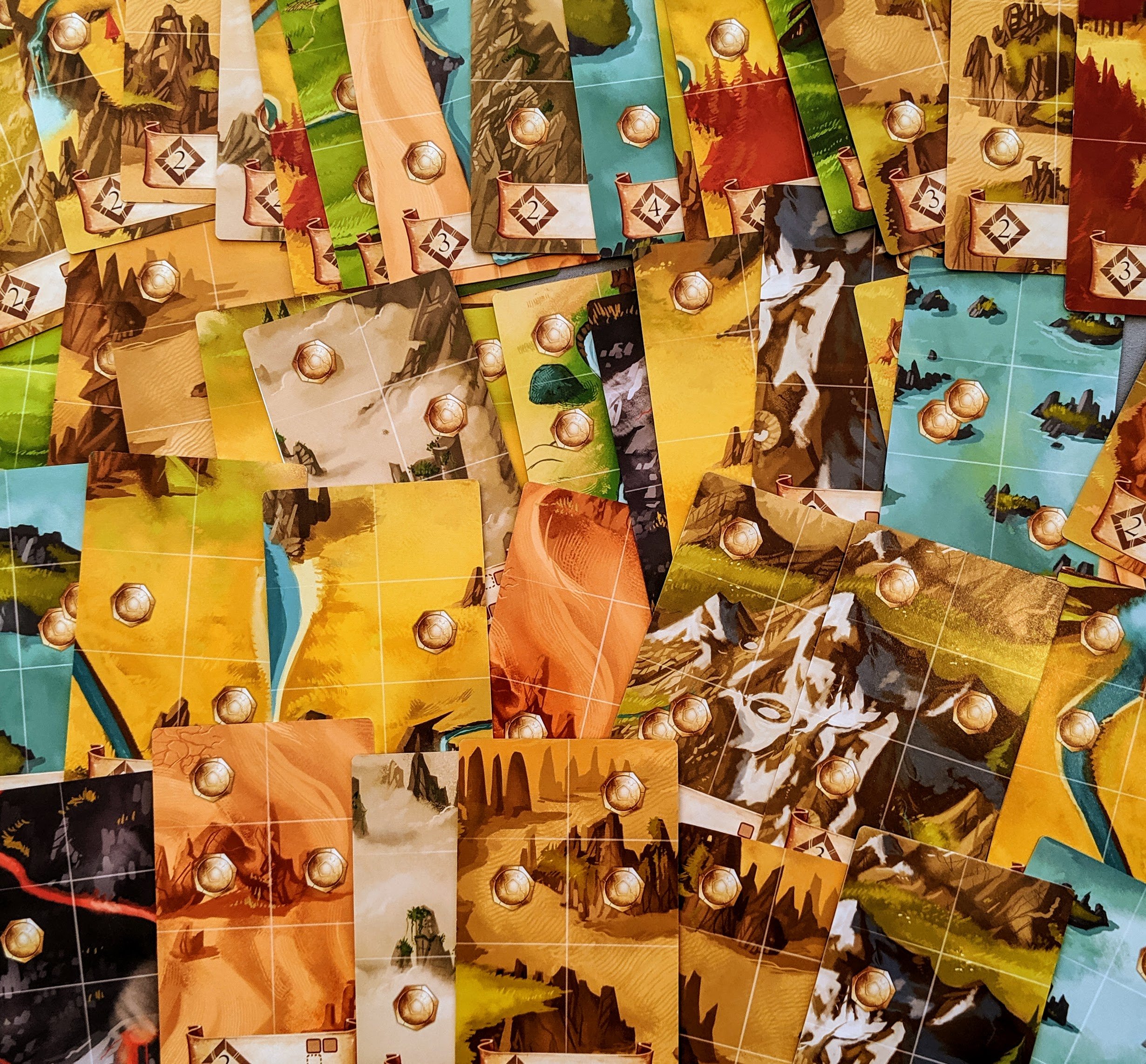 There are so many gorgeous cards in this game! The board is literally made up of cards, which are all double sided and super pretty and vibrant.