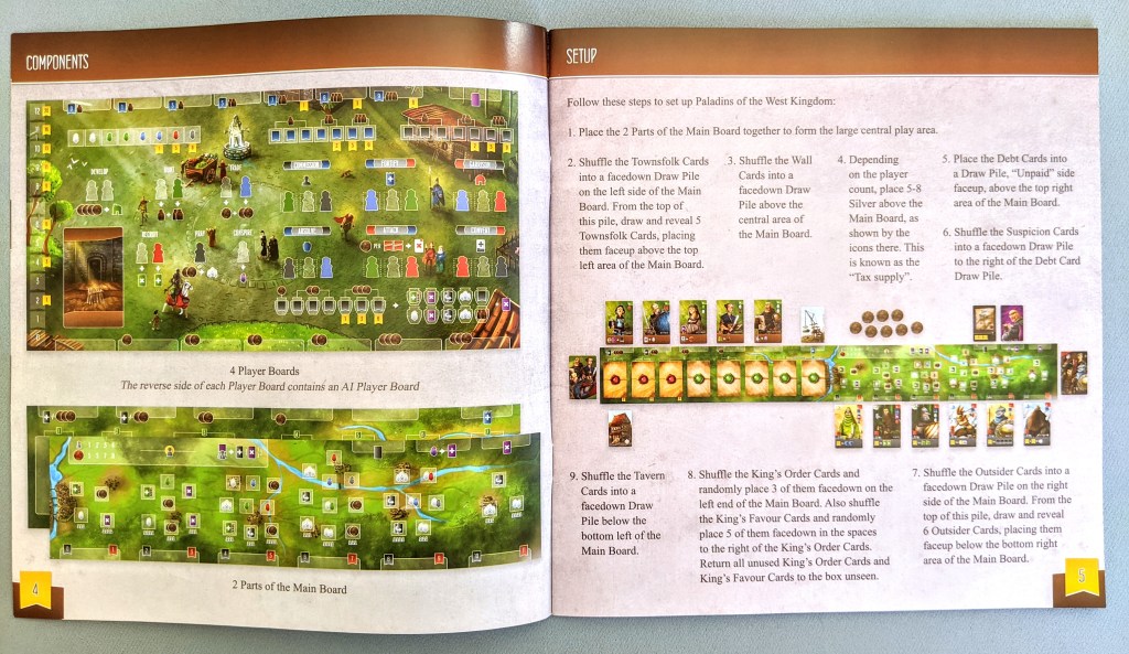 The set up pages are very clear and feature a lot of different image examples to assist set up as there are multiple different boards which some may find confusing. These pages are laid out neatly in a similar graphic design style to other games from Garphill. I don’t know if it is normal, but my rulebook seems to be stapled in a way which makes it sit quite weirdly, but it is not a huge issue.