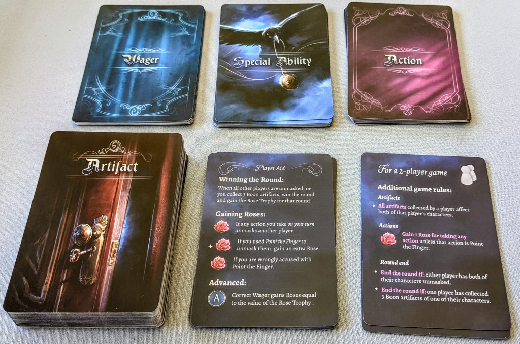 There are a bunch of different things you can add in such as special character abilities and wager cards once you become more advanced. The game also comes with player aid cards, but not only are there regular ones, there are specific ones for a 2 player game which is cool!