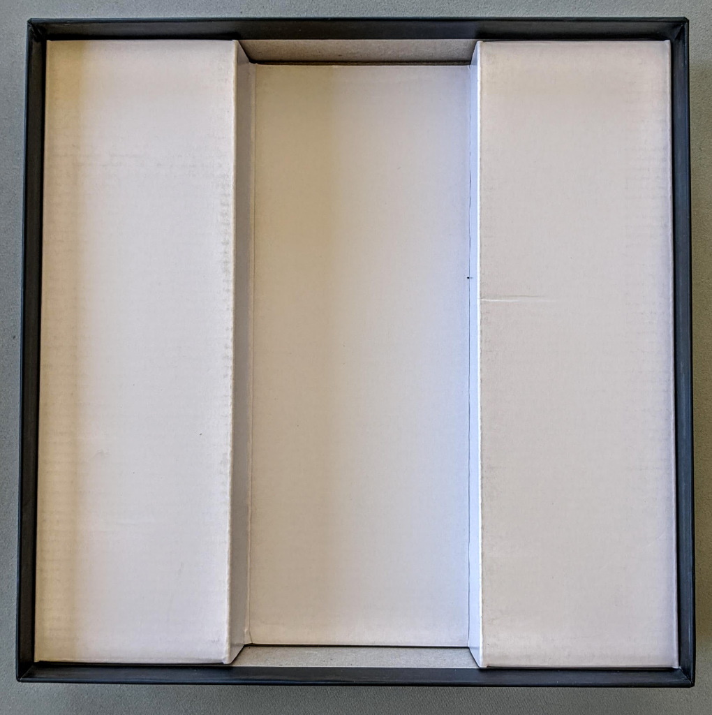 Each of the inside edges have really subtle border artwork which is not distracting at all and adds a classy feel to the game. The game box was smaller than I was picturing compared to The Grimm Forest (very over-produced, but stunning!) but it still has quite a bit of spare space.