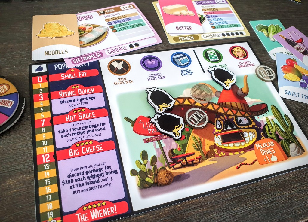 - I think some of the Chef and restaurant powers can be a bit unbalanced. I’ve noticed that the powers that yield money for the player very often end up making that player very powerful. While you don’t have to trade with anyone if you don’t want to, when someone is offering you a ridiculous deal you will often take it, and when everyone behaves this way (which is totally normal) then players with lots of money can easily buy their way to victory. While this is common in lots of games, this game does award some players lots more money. For example, one of the restaurant mats gives the player bonuses of straight cash, whereas another gives a lessened amount of garbage, which evaluates to ‘less money’ when you consider the savings you would make on getting rid of your garbage with that ability.