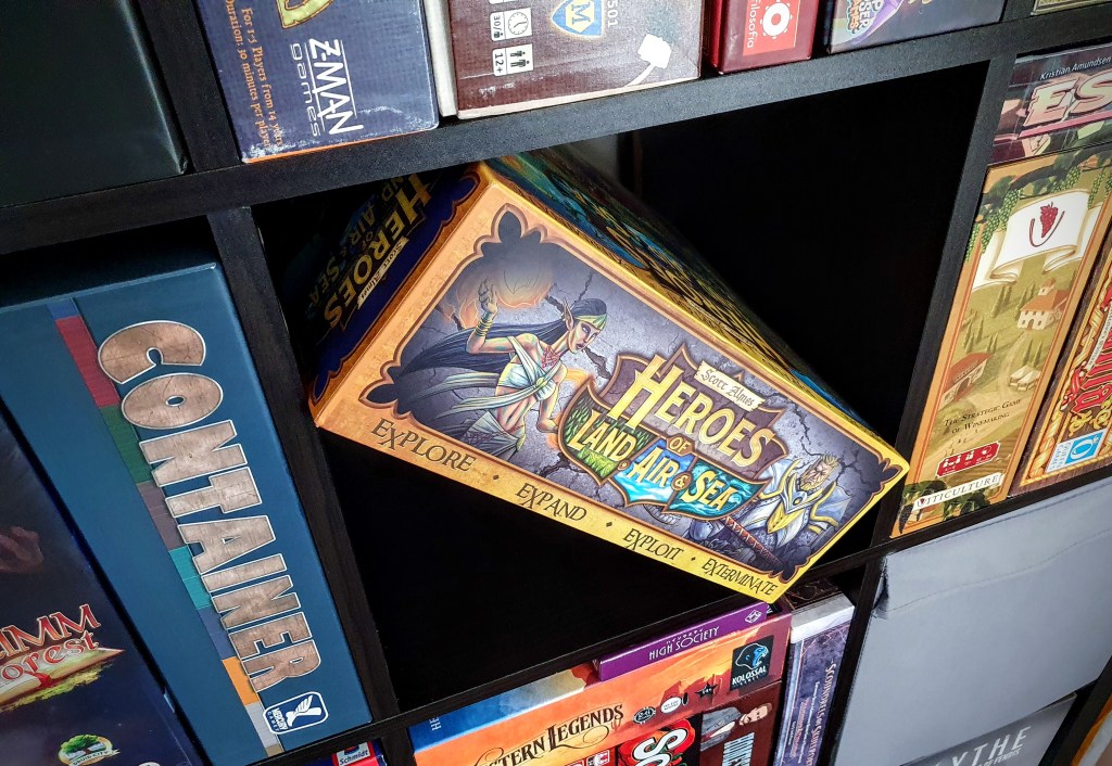 Games that don’t fit well (or at all) on my shelves. Like all gamers, I have a trusty set of Ikea Kallax shelves set up prominently in my gaming area in which I store all my games. It’s an attractive, functional and cost effective solution designed specifically to show off boardgames. It’s interesting to see that sometimes people mistakenly use the shelves to store vinyl records, which I guess were probably sized so they would fit nicely on boardgame shelves. Despite this de-facto industry standard of shelving which generously provides 13×13 inch units perfectly sized for storing games, some games decided they were ‘too big’ for this, too special to fit comfortably on a shelf of this size. I’m looking at you, Heroes of Land, Air and Sea, Mechs Vs Minions, Twilight Imperium (3rd edition). Oh, and while we are here … why can’t all game boxes be one of the two perfect game box sizes – the Ticket to Ride box size, or the Agricola box size. I’m ok with varying depth. But isn’t it just annoying when games like Viticulture come along with their extremely non-standard box size to ruin my shelf packing systems.