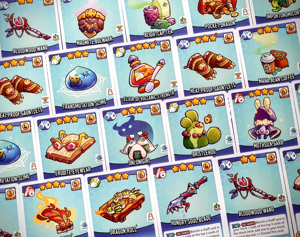 - There is confusing language on some cards that could have been made more clear with some revision. Especially cards that make reference to ‘you’. Most players might expect ‘you’ to refer to the player whose turn it currently is, but in several cases in Adventure Mart ‘you’ can refer to ‘the player who gains this card’ (which might not be the player whose turn it is). These situations could be made less confusing by being explicit on the card.