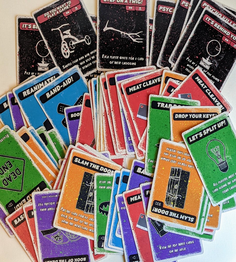 Psycho Killer caught my eye initially as it is a locally designed game from right here in Canberra. It was initially Kickstarted in 2020, and after a successful campaign, it is now available through the publisher’s website and in stores. Inspired by retro slasher movies, this is a quick, take-that style hand management game where you must avoid injury and attacks from your ‘friends’.