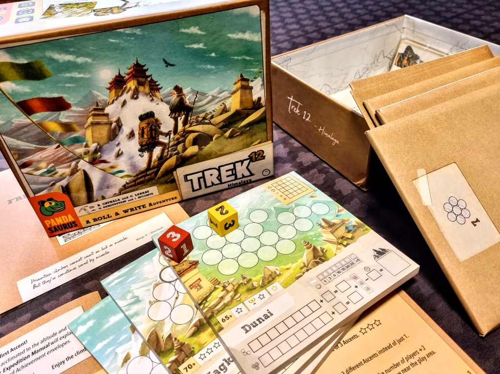 I’m growing to very much enjoy roll and write games in all their forms. My initial aversion to them for having consumable components is basically removed now with the realisation I only play very few games many times. I found Trek 12: Himalaya to be a surprisingly well put together game, both in gameplay and presentation. The unlockable envelopes add to the intrigue and experience. I think one of the strong points of this game is its simple rules and ease of play, and I would be happy to pull it out and play with anyone regardless of their ‘gaming level’. If Trek 12 sounds interesting to you, you can find out more and snag a copy at the Pandasaurs Games store!