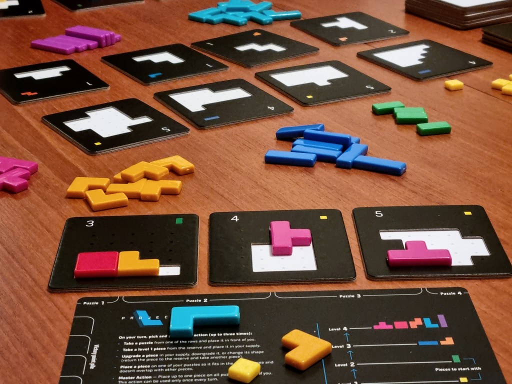 - The puzzle tiles in Project L are all pretty general, i.e there is really no tiles that need specific pieces or sets of pieces. I think because of this, there is a limit in the game on more advanced player interactions. Hate drafting (stealing a puzzle someone has their eye on) isn’t really possible because every puzzle is so flexible.