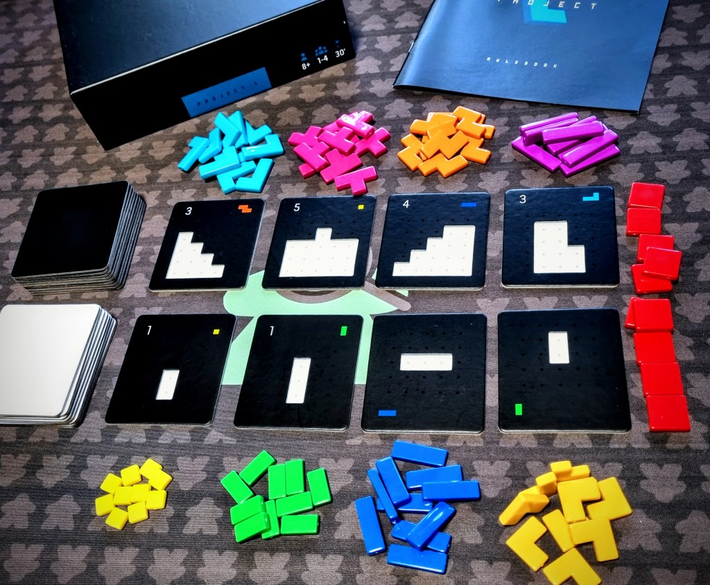 Project L was originally published via Kickstarter, first with a delivery in 2019, and a second Kickstarter for an expansion delivered in late 2021. The game has just begun making its way to retail shelves now in Australia. Project L brings a very Tetrisy feeling game to the table, and after seeing it in pictures online for a few years without being able to try it, I was more than happy to give it a go now that it has finally become more widely available.