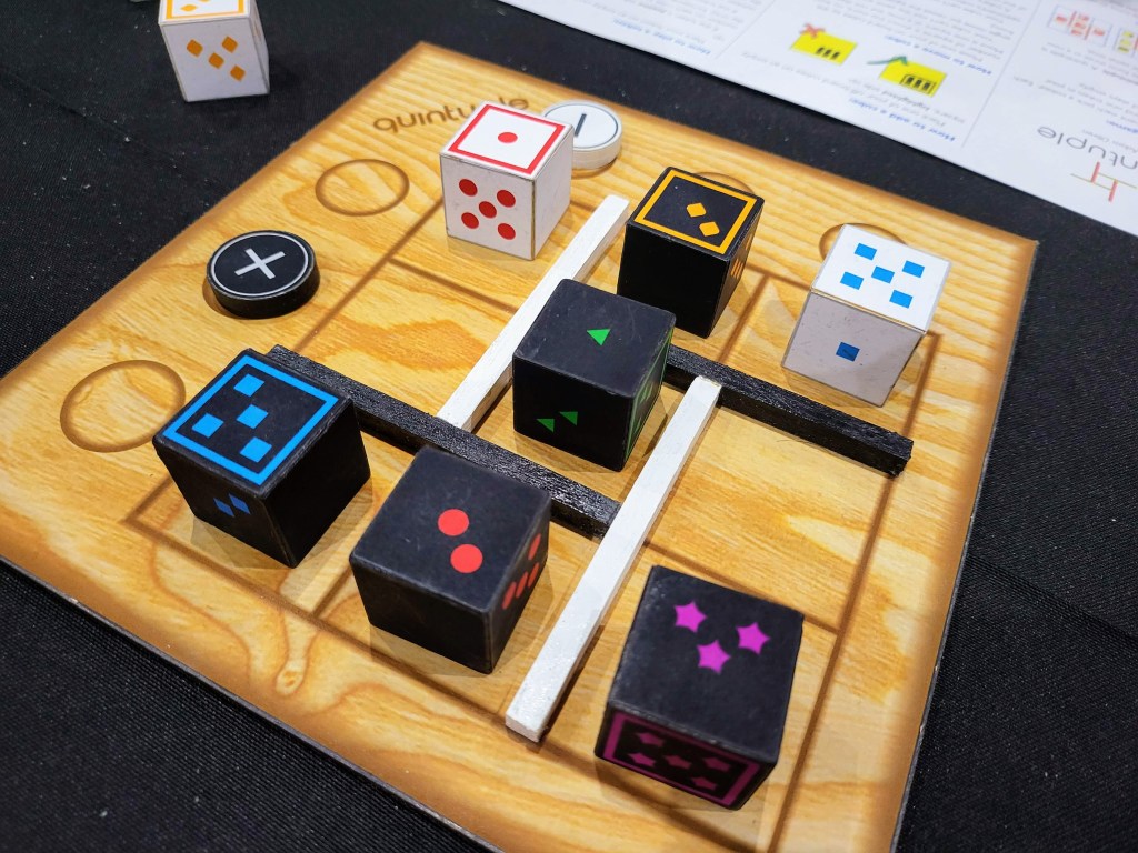After a very intense and deeply strategic 15 minute battle, I managed to edge in a win over my opponent. I found the game to be really satisfying to play, and apart from a few minor rules clarifications and visual design improvements, it feels like a game that is ready to publish. Find the BGG entry for Quintuple here