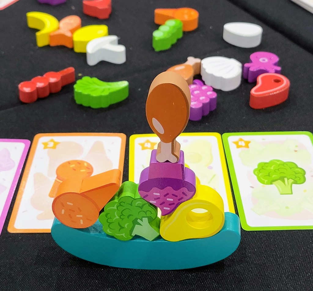 Buffet Boss is a game from Singapore, published by Origame and designed by Darryl Chow. At its core, it’s a simple balancing game (like Animal upon Animal) but with a couple of tweaks that make it a little more strategic, fun, and competitive.