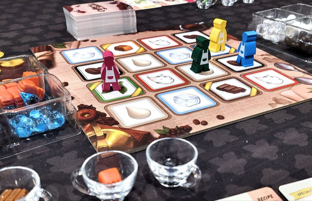 - In addition to the lovely artwork, the production of this game is also ‘deluxe is standard’ level. Especially notable are the super cute custom resource tokens for each of the 8 ingredient types, not to mention the tiny little coffee cups!