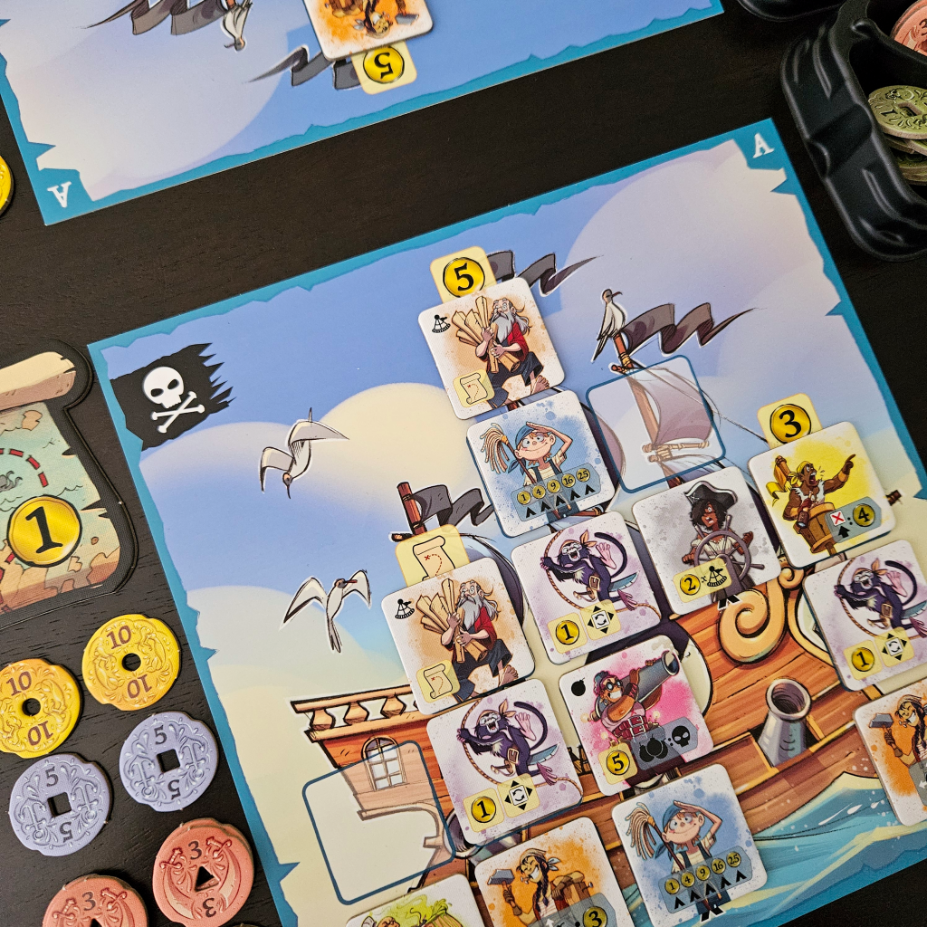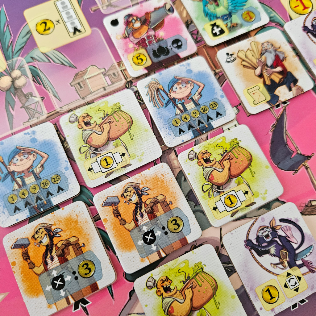 Captain Flip is a family weight tile placement game for two to four players, where as captain you’re trying to recruit the best crew for your absolutely reputable and not at all dodgy ship.