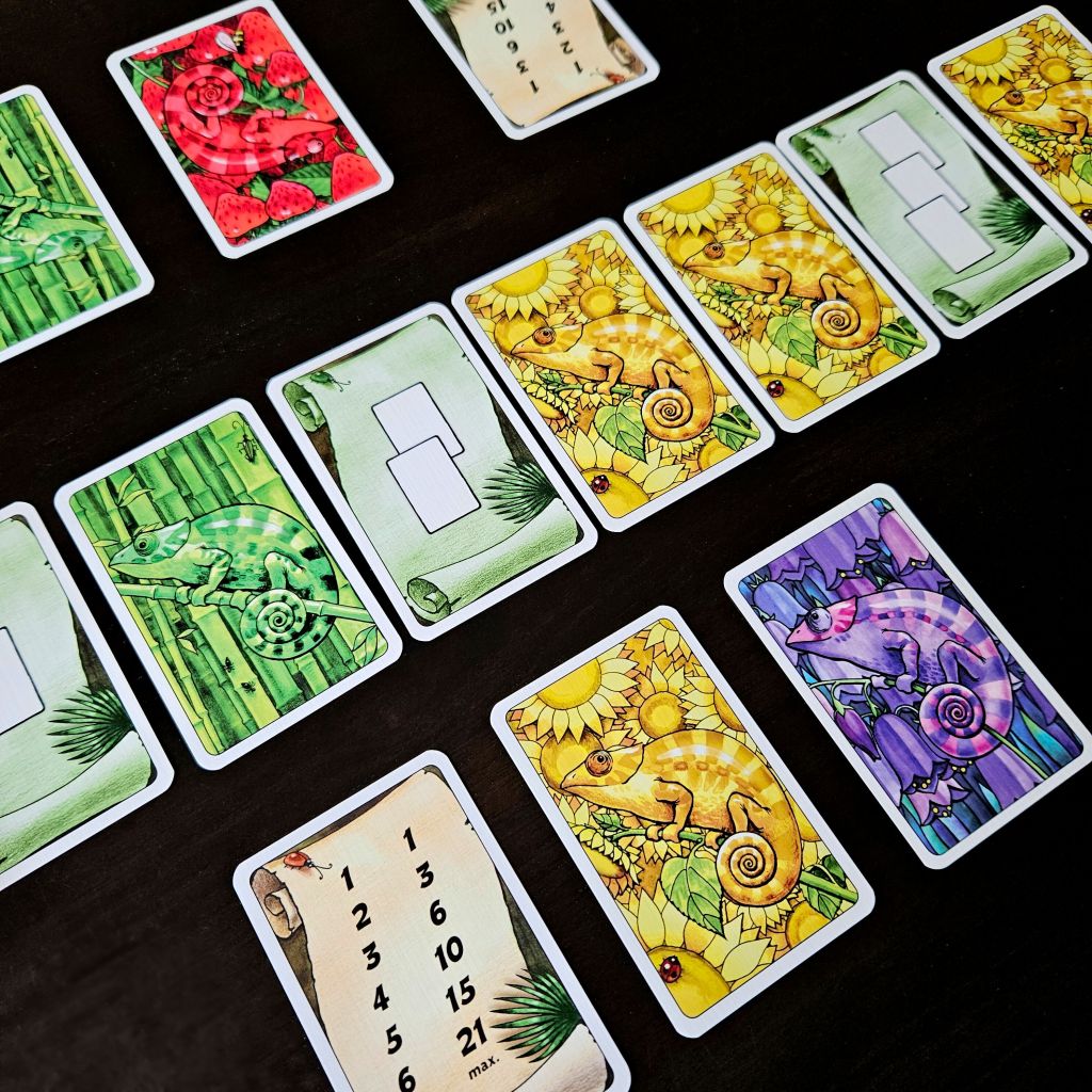 We’ve been playing Coloretto from designer Michael Schacht. It’s a card game for 2-5 players where you try to gather the best sets of Chameleon cards.