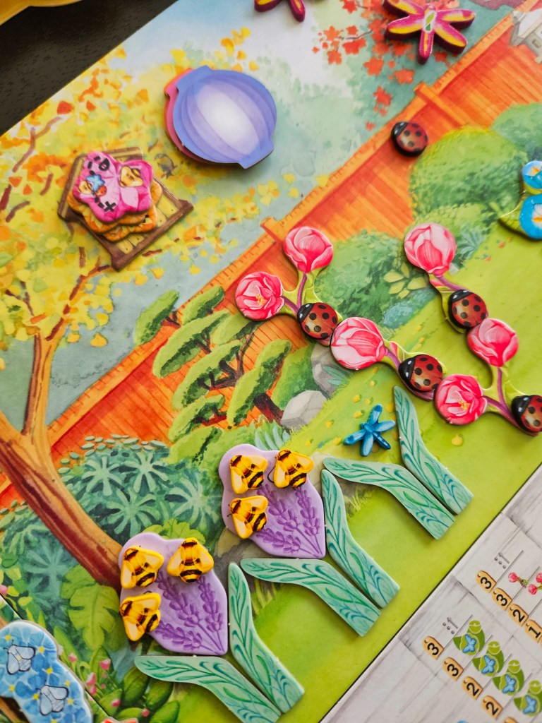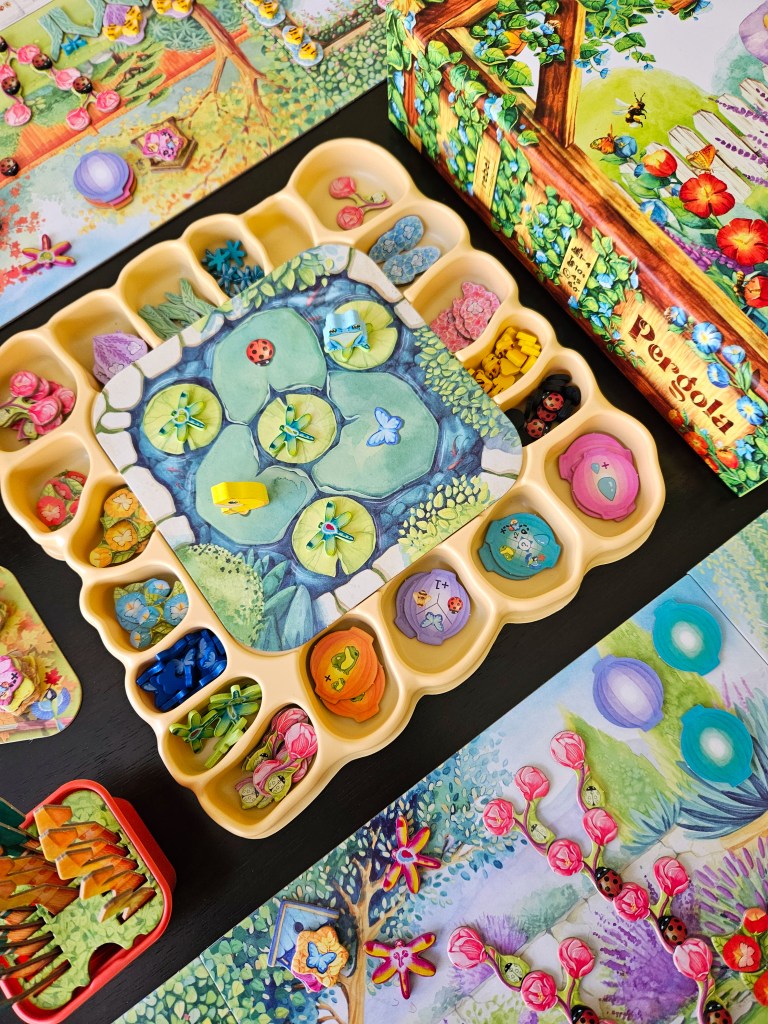 I love gardening and sitting in my garden to watch all the butterflies and bees enjoy the flowers I planted, so Pergola’s theme really appeals to me. The artwork is stunning, and I often leave the game set up on my table after playing just so I can look at it for a while longer.