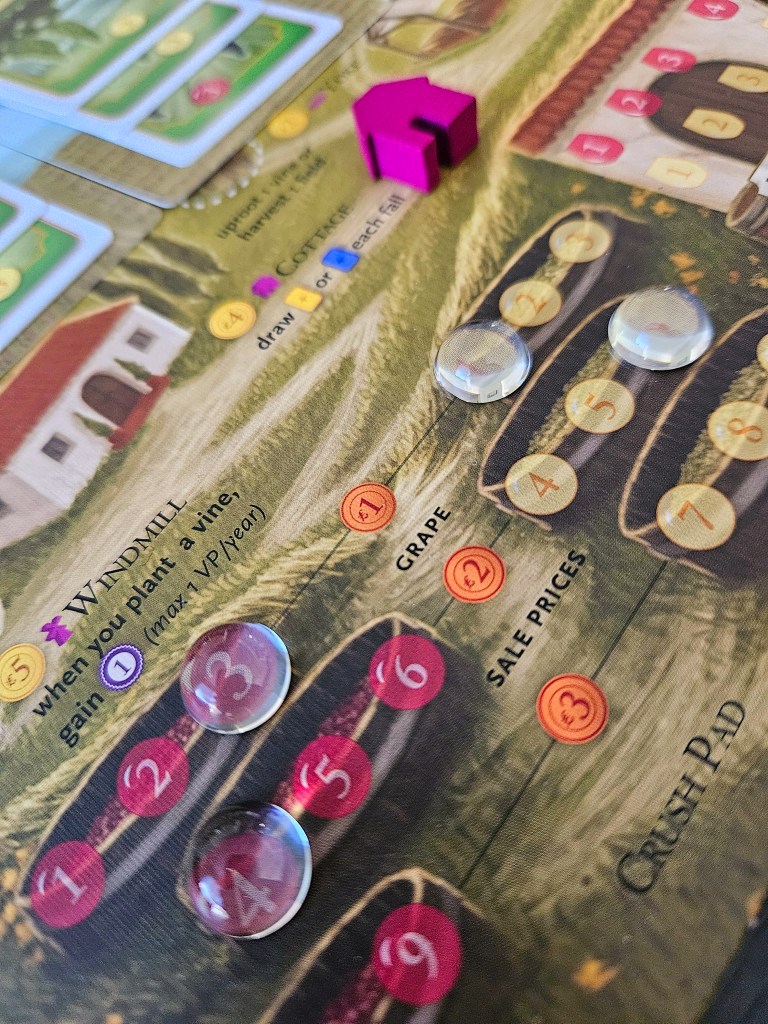 A couple of cheap vines planted early on can pay off big at the end of the game, but there’s a problem too. They can only age as far as there’s cellar space, so if you can’t unlock that by the time it’s needed all that advanced planting can go to waste.